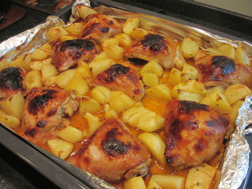 Chicken thighs with potatoes are a cozy and hearty dish loved by many European families. Its roots trace back to traditional home cooking, where the simplicity of ingredients combines with rich flavors. Tender chicken thighs infused with spice aromas and fried to a golden crust pair wonderfully with soft potatoes that absorb the meat's juices, becoming incredibly juicy. The light sweetness of carrots and the softness of onions add a pleasant depth of flavor to the dish. This dish is versatile: it suits both family dinners and cozy gatherings with friends. The simple cooking process makes it accessible even for novice cooks, while butter at the end gives the dish a special tenderness and velvety texture. An ideal option for those who appreciate homey comfort and soulful taste.