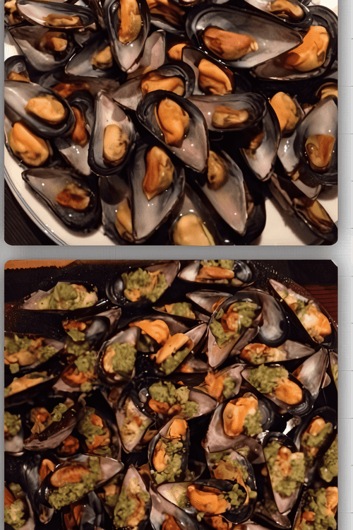 If your mussels are closed, place them on a baking sheet in the oven at 200 degrees for about 5 minutes. After a few minutes, they will open, and you can proceed with the recipe.