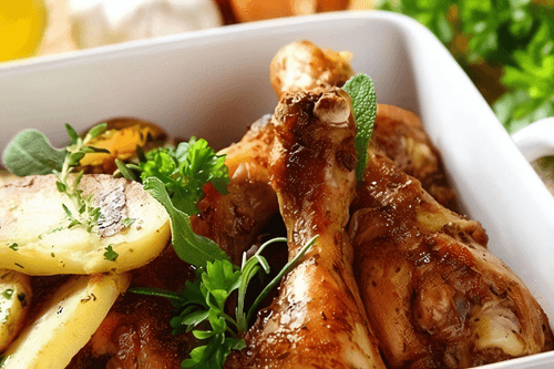 Italian-style aromatic chicken with potatoes is the embodiment of Mediterranean culinary art. This recipe transports us to sunny Italy, where fresh herbs, olive oil, and lemon juice create a unique flavor. Tender chicken thighs infused with rosemary and oregano aromas pair with soft, baked potatoes and tangy olives. The light acidity of lemon juice enhances the depth of flavor, while slow roasting makes the dish incredibly juicy. It's an ideal option for a family dinner or a cozy evening with friends. Italians value simplicity and rich flavors in their dishes, and this recipe is a vivid testament to that. Serve it with a glass of white wine to further enjoy its southern character.