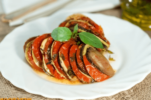 Ratatouille with pesto sauce is a fragrant dish embodying the traditions of Mediterranean cuisine. Its roots trace back to French Provence, where fresh seasonal vegetables come together in a harmonious ensemble of flavors. Eggplant, zucchini, and tomatoes soaked in the rich taste of homemade pesto with basil, almonds, and garlic create a tender texture and vibrant, rich flavor. The light lemon note of the sauce refreshes while ground black pepper adds spiciness. This dish not only pleases the eye with its aesthetic presentation but is also perfect for both a light dinner and a festive table. Ratatouille with pesto sauce can be served hot; it pairs wonderfully with crispy baguette or light wine, adding sophistication and comfort to the meal.