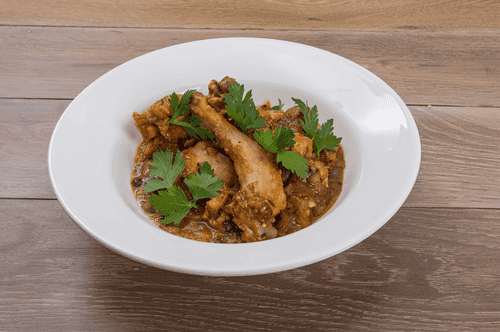 Rabbit in almond sauce is an exquisite dish of European cuisine, where the juicy rabbit meat harmoniously combines with the nutty notes of almonds and the sweetness of figs. The recipe's origins trace back to ancient French traditions, where the combination of meat with fruits and nuts was considered a sign of true gastronomic sophistication. The subtle aroma of rosemary and thyme enhances the depth of flavor, while the delicate sauce infused with breadcrumbs and broth makes the dish particularly rich. Rabbit stewed in this aromatic mixture turns out tender and soft, imbued with warm autumn hues of almond and fig. An ideal treat for a family dinner or festive table, this dish pairs excellently with light white wine and fresh green salads.