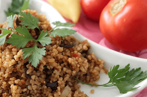 Bulgur with vegetables and spices is a bright and aromatic dish rooted in Mediterranean traditions, where bulgur is valued for its nutrition and delicate nutty flavor. In this recipe, it is infused with spices—curry and cinnamon—that add Eastern notes, while fresh vegetables—eggplant, bell pepper, tomato, and leek—provide juiciness and richness. The dish is prepared in a cauldron or baked in pots, acquiring a rich taste and pleasant texture. It can be served as a standalone dish or used as a side for meat and fish. Bulgur with vegetables pairs wonderfully with herbs and yogurt sauces, creating a harmonious balance of flavors. An ideal solution for those who appreciate simplicity, nutrition, and aromatic culinary traditions!