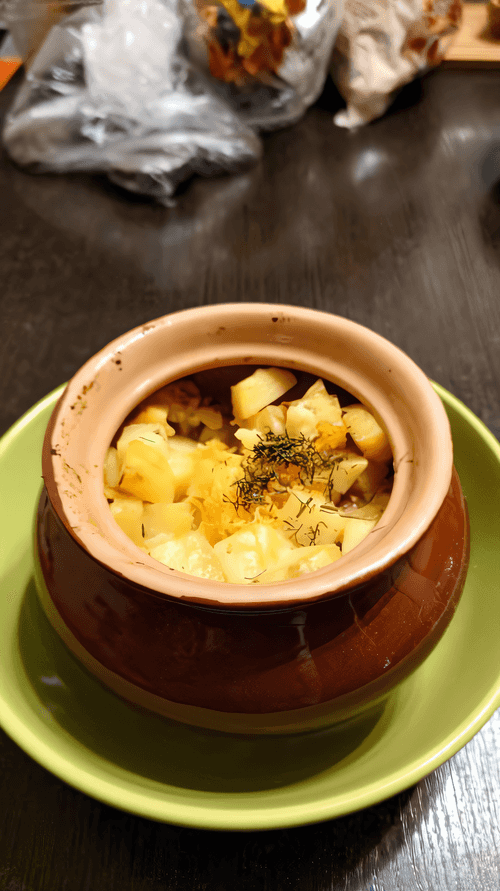 Meat with potatoes in pots is a cozy and heartfelt dish rooted in European rural traditions. Clay pots used for centuries help retain the juiciness of ingredients and enhance their flavor. Tender pork infused with the aromas of fried onions and mushrooms harmonizes with golden-brown potatoes, while a thick sour cream sauce adds creamy softness to the dish. Long baking in the oven makes the meat incredibly tender, and the potatoes soak up the juices, becoming especially appetizing. It's an ideal option for a family dinner or celebration, creating an atmosphere of home warmth and comfort. It can be served directly in the pots, enjoying the aromas and flavors that unfold with each bite.