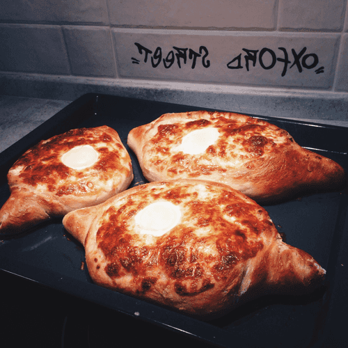 Send the khachapuri to a preheated oven at 200 degrees for 30 minutes.