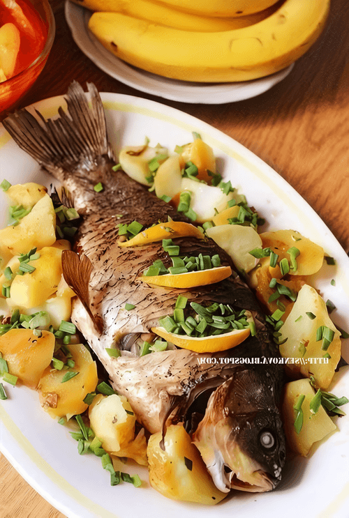 Baked carp with mushrooms is a true embodiment of Russian culinary tradition, combining tender fish with the aroma of forest mushrooms. This recipe has deep roots in village cuisine, where fresh catch and nature's gifts are transformed into a gourmet treat. The baked carp acquires a golden crust while its meat remains juicy thanks to the mushroom filling. A light tang of lemon adds fresh notes that perfectly complement the rich flavor of the dish. Such fish can be served both at festive tables and cozy family dinners, accompanied by fresh vegetables or potatoes. This dish is a harmony of simple yet expressive ingredients that create gastronomic delight.