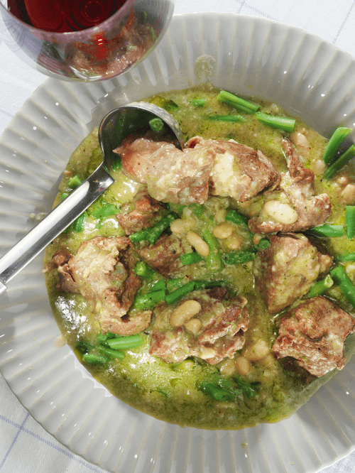 Lamb with beans and green beans