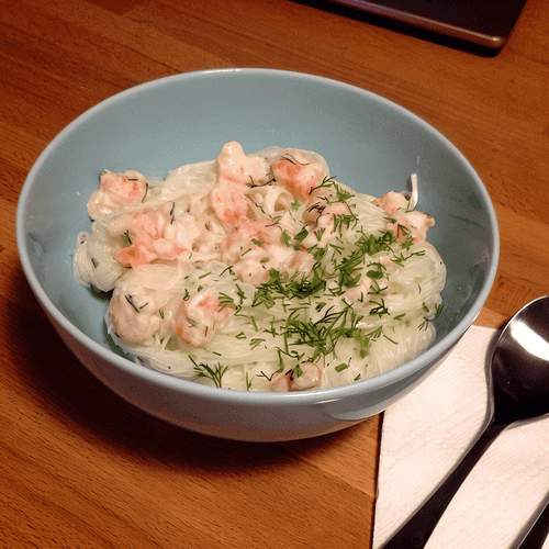 Shrimp funchose in creamy sauce is a delicate and exquisite dish that captivates with its harmonious flavor. The lightness of funchose combines with the velvety creamy sauce, while the shrimp add a marine freshness and sophistication. This dish is perfect for a cozy dinner or a formal gathering. Its origin is linked to Russian cuisine adapting Asian motifs to local traditions. Dill and garlic enhance the creamy base with vibrant aromas, while black pepper adds subtle spiciness. Serving with soy sauce adds depth to the flavor and allows everyone to adjust the dish to their preferences. Shrimp funchose is a balance of tenderness and richness that leaves a pleasant aftertaste and a desire to try more.
