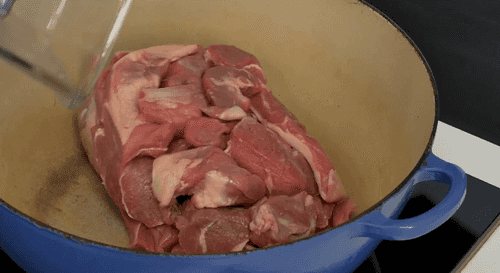 You can ask the seller at the market to remove the meat from the bone. The bones can be saved for future broths. Cut the meat into portion-sized pieces and place them in a thick-bottomed container.
