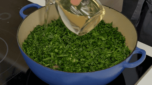 Pour in the wine, cover with a lid, and place on low heat for about an hour.
