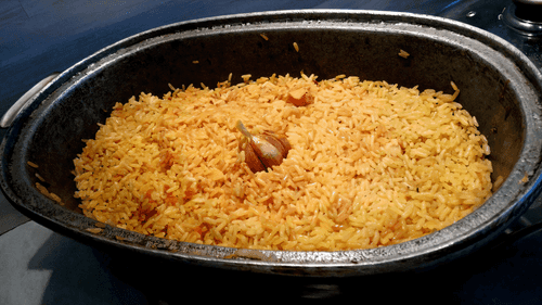 When the water is low, we add more — the rice should be almost ready this way, and only then do we reduce the heat and carefully check if all the water has evaporated underneath (I do this with a spatula by slightly moving the rice away from the edge). Once the remaining water has evaporated, we turn on the lowest heat, add a bit more cumin, cover it with a lid and leave it for about 20 minutes. After that, we turn off the heat, remove the garlic and any chili pepper if present, and mix everything well.
