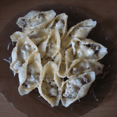 Stuffed shells with meat are a true delight of Italian cuisine, combining the tenderness of conchiglie pasta with the richness of meat filling. The history of this dish traces back to traditional Italian recipes where pasta served as an ideal vessel for various fillings. In this version, the filling is sautéed with spices until golden brown and then carefully placed into al dente shells. The finishing touch is a rich layer of grated cheese that melts to create an appetizing crust, infusing the filling with the aroma of melted milk. This dish is perfect for a cozy dinner and can also be a highlight of festive gatherings. It is best served hot, enjoying the harmony of flavors where the tenderness of pasta meets the juiciness of meat and the spiciness of spices.