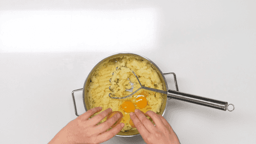 Potatoes need to be peeled and boiled until soft in salted water.