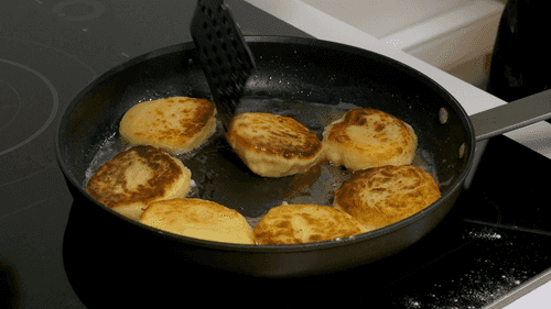 Heat a pan with vegetable oil and place the patties on it. Fry the patties over medium heat until they turn golden.