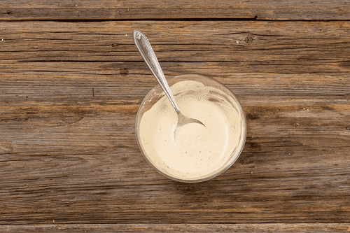 Mix mayonnaise with garlic paste, add juice of 0.5 lime, anchovies, rosemary, soy sauce, pepper, and mix thoroughly.