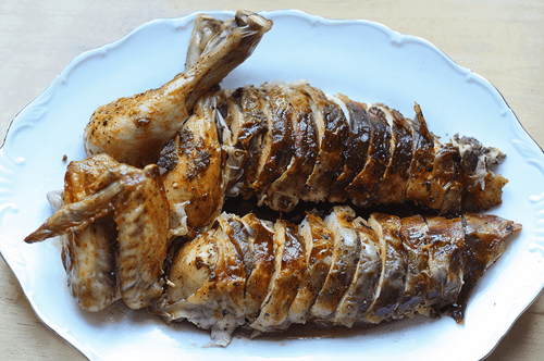 Once the bird is ready, let it rest for at least 20 minutes. During this time, the juices that have accumulated in the center will redistribute. Then, carve the bird in any way you prefer and serve it with the garnish at a table full of loved ones.