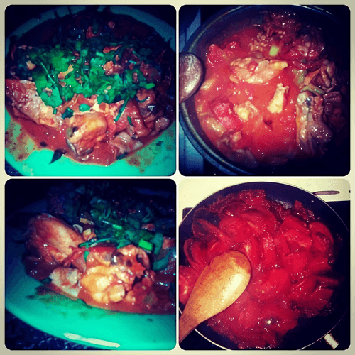 20 minutes have passed since the chicken has been stewing, we add our fried onion to the pot. The stewing process of the chicken continues now with the presence of onion. Meanwhile...