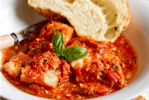 Cod baked with sauce