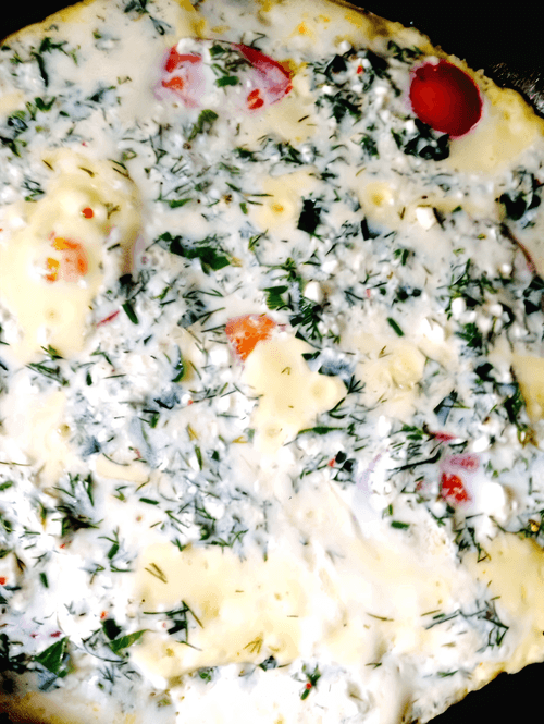 Cottage cheese with cheese, egg and herbs