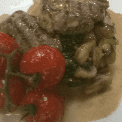 Veal with mushrooms and spinach in sambuca sauce