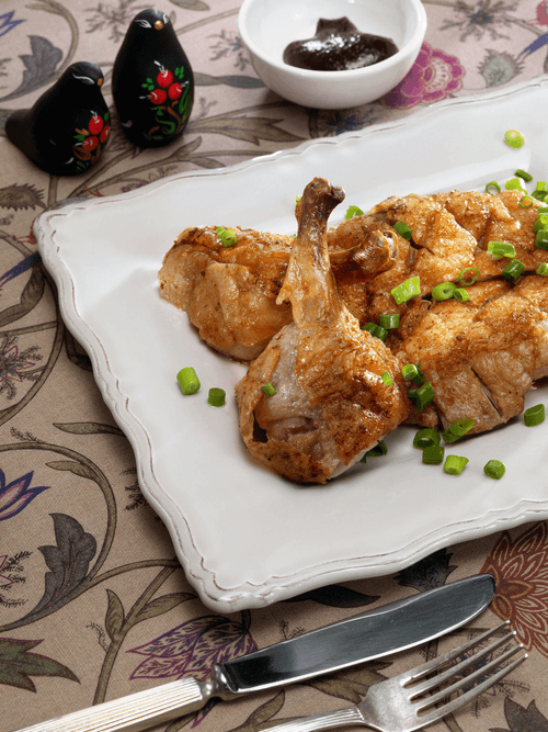 Roast duck with hoisin sauce is a true embodiment of the sophistication of Chinese cuisine. This recipe has its roots in traditional methods of preparing duck in Beijing, where the caramelization of the skin and deep aroma of spices make the dish delightful. White pepper, garlic, and Chinese 'Five Spices' create a rich spicy flavor, while hoisin and orange liqueur give the duck a sweet glaze with a hint of citrus. The dish is tender and juicy with an appetizing crispy crust that pairs perfectly with rice, greens or flatbreads. This treat is suitable for both festive tables and exquisite dinners. Each piece reveals a wealth of flavors, turning the meal into a true gastronomic journey through China.