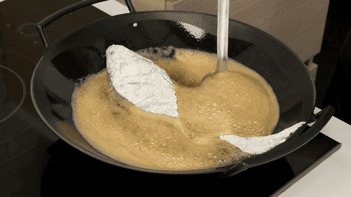 Heat oil in a pan or large skillet and fry the fish for four to six minutes on each side until golden brown. Drain the fish on paper towels.