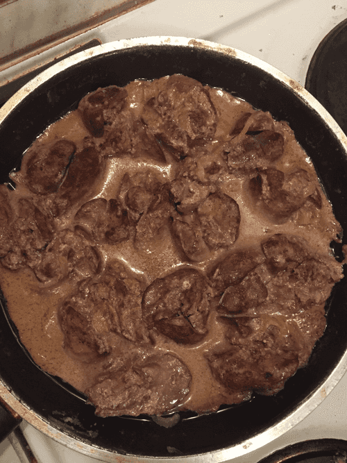Chicken liver stewed with sour cream