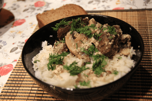 Bear meat with mushrooms