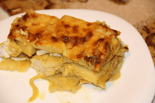 Potato casserole with chicken and cheese is a warm, cozy dish born in Russian cuisine. The casserole combines the tenderness of chicken fillet, the richness of potatoes, and the spiciness of hard cheese to create a harmony of flavors. The history of the dish is rooted in the tradition of Russian casseroles where simple, accessible ingredients transform into a hearty and aromatic treat. Potatoes soak up creamy sauce, softening and acquiring a creamy texture while a golden crust forms from melted cheese on top. The casserole is perfect for family dinners as well as festive feasts and can be served with pickles or fresh vegetables. This dish is not only nutritious but also incredibly comforting, evoking warm associations with home and leisurely evenings among loved ones.