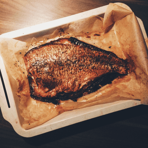 Line the baking tray with parchment paper. Place the fish on the paper.