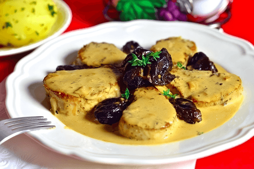 Pork medallions with prunes are a refined dish of European cuisine, embodying rich traditions and a harmonious blend of flavors. Tender meat, fried to a golden crust and infused with the aroma of butter and white wine, gains a rich taste that is perfectly complemented by the sweetness of prunes and the creaminess of the sauce. This dish can adorn a festive table or make a family dinner cozy. The medallions are juicy and tender, while the addition of aromatic vegetables and spices gives them a unique depth of flavor. Inspired by classic European cooking techniques, this recipe showcases the elegance of cuisine where simplicity of ingredients meets refined culinary methods. Serve with a glass of white wine or alongside fresh vegetable garnishes for an ideal flavor balance.