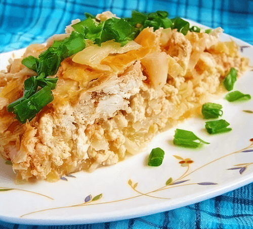 Cabbage casserole with minced chicken