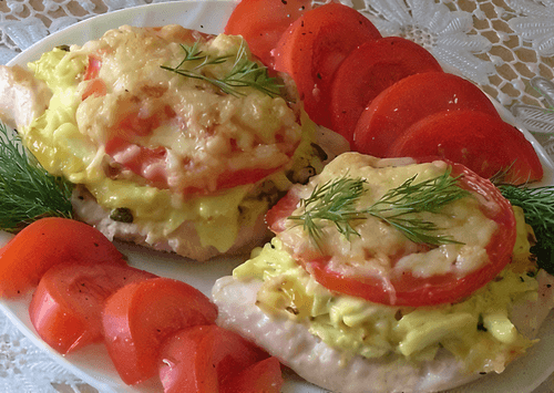 Mix onion, zucchini, garlic, herbs, and mayonnaise. Mix well.