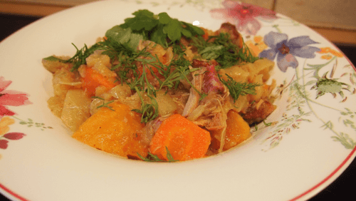 Ühepajatoit is a traditional Estonian dish that embodies the simplicity and warmth of rural cuisine. This aromatic vegetable stew combines juicy meat, sweet carrots and swede, soft potatoes and cabbage in a harmony of flavors. Smoked pork ribs add depth, creating a rich and cozy taste. The dish is cooked in one pot, giving it richness and a wealth of aroma. It perfectly warms on cold evenings, reminiscent of family gatherings. Ühepajatoit is served with herbs that add freshness and lightness. It is not just a stew — it is a true culinary story of Estonia that conveys the atmosphere of home comfort and traditions.