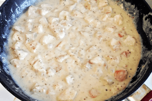 Finally, the highlight of the recipe is French mustard, sometimes called Dijon mustard. Its main feature is the presence of mustard seeds. Its taste can range from sweet to very spicy. It’s best to use Heinz French mustard because it is very aromatic and spicy. Add this mustard to the chicken and mix well. Cover with a lid and simmer until the chicken is cooked through. If during simmering the sauce evaporates and seems too little, you can add a bit of 10% fat cream.