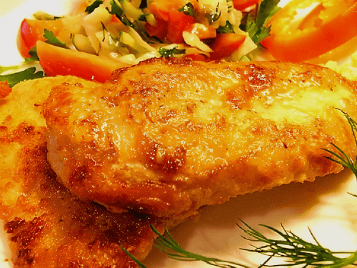 Chicken schnitzel is a tender and aromatic dish of European cuisine that originated in Austria but has become popular worldwide. This golden, crispy schnitzel is made from chicken fillet that is carefully pounded to the perfect thickness, then dipped in a flavorful batter and coated with crunchy breadcrumbs. After frying in oil, it develops an appetizing crust while retaining juiciness and tenderness inside. Its taste is rich with subtle hints of spices and an airy texture. It pairs perfectly with potato sides, fresh vegetables, or light sauces that add depth to the flavor. Chicken schnitzel is a versatile dish suitable for both family dinners and festive gatherings.