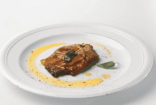 A classic Roman dish whose name translates as "jump into your mouth": tenderloin, topped with sage, wrapped in prosciutto and pan-fried.