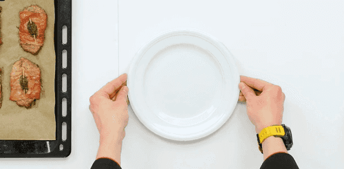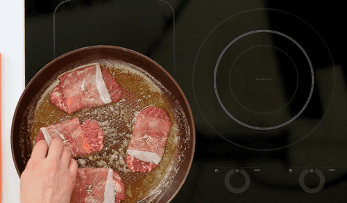 Wrap each cutlet with slices of prosciutto. If the pieces are quite large, they can be cut in half for convenience. Place a few sage leaves on each.