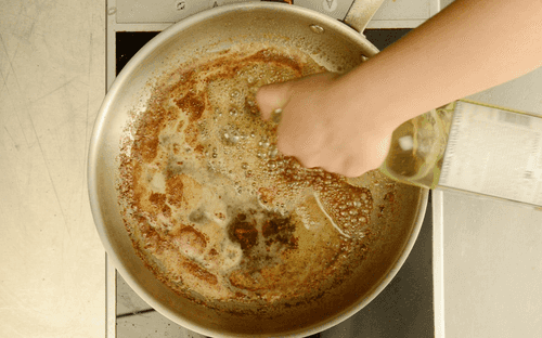 Hold a bit longer, stirring vigorously, to thicken the sauce with 1 tablespoon of butter.
