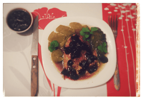 Chicken in honey with cranberry sauce