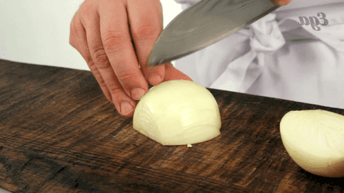 Finely chop the onion and sauté in fat or vegetable oil over low heat for about 15 minutes.