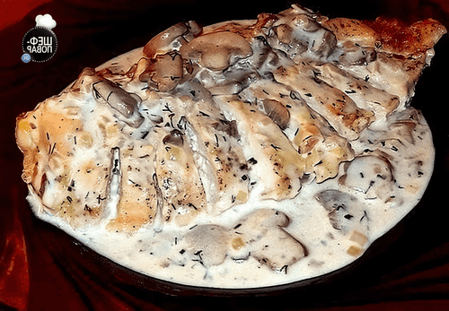 Chicken breasts with mushrooms in sour cream sauce is a tender and aromatic dish of European cuisine that combines the juiciness of chicken meat, the softness of baked potatoes, and the rich flavor of mushrooms enhanced by the creamy tenderness of sour cream. This dish, known for its simplicity and cozy home atmosphere, is perfect for both family dinners and festive gatherings. The mushrooms add zest, while the sour cream and ketchup sauce provides a slight tanginess and creamy texture. Baking allows the ingredients to fully reveal their flavors, creating a harmony of tenderness and richness.