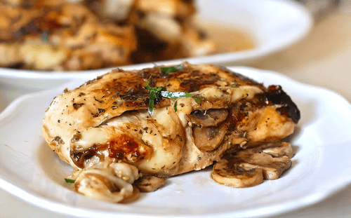 Chicken fillet stuffed with mushrooms and cheese is a refined dish of European cuisine that combines the tenderness of chicken, the aroma of forest mushrooms, and the richness of Swiss cheese. It gained popularity due to the harmony of flavors and simplicity of preparation. A marinade made from lemon juice, spices, and vinegar makes the meat juicy and flavorful. Sautéed mushrooms with onions add a deep, earthy taste to the composition, while melted cheese provides a creamy texture. Tarragon adds subtle anise notes. The dish is perfect for a festive dinner or a cozy family gathering. It can be served with vegetables, greens, or a light sauce to highlight the richness of flavor nuances. Tender meat, aromatic filling, and an appetizing golden crust are what make this recipe special.