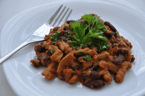 Pork with beans is a hearty and aromatic dish of European cuisine that combines the rich flavor of meat with the sweet, velvety texture of beans. This dish traces back to peasant traditions where meat and legumes were staples due to their nutrition. The pre-fried pork develops a crispy crust, while tomato paste and spices give it a rich, slightly tangy taste. Bell pepper adds fresh, juicy notes, and garlic and onion enhance the aroma. The dish is perfect for family dinners and can be served with greens and fresh bread to highlight its warm, homely character. An ideal option for cold evenings when you crave something comforting.