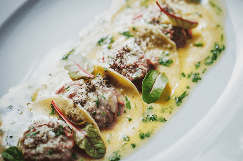 Beet ravioli is an exquisite dish of European cuisine that combines the tender texture of pasta with the rich flavor of roasted beets. This recipe was born from the desire to blend simple ingredients with refined taste accents. The filling made from beet puree, ricotta, and parmesan gives the dish a sweet, creamy flavor with subtle nutty notes. A fragrant herb-infused butter adds a special piquancy – with mint, sage, and tarragon. Poppy seeds add a delicate textural play. Ravioli are perfect for both special dinners and cozy home meals, impressing with their combination of simplicity and sophistication. A chard garnish completes the composition by adding freshness and a crispy lightness.