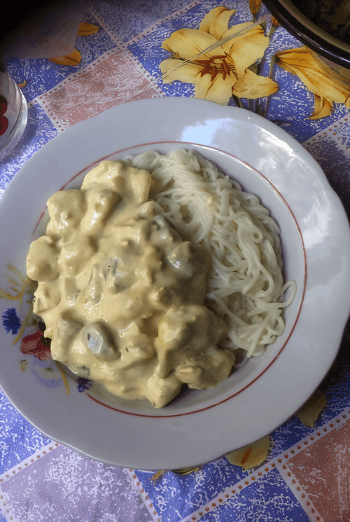 Chicken with mushrooms in creamy cheese sauce