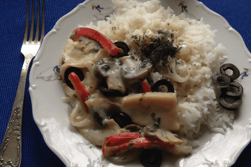 Sea scallops with mushrooms 'French style' is an exquisite dish inspired by classic French cuisine, where seafood combines with a delicate creamy sauce and aromatic spices. The scallops, with their subtle sweet flavor, are complemented by juicy mushrooms and bell peppers, creating a harmony of textures. The delicate creamy sauce with hints of saffron and basil adds sophistication and depth of flavor to the dish. Served with airy long-grain rice that absorbs the rich aromas of the sauce, this dish is an ideal choice for a romantic dinner or special occasion, immersing you in the atmosphere of French gastronomy.