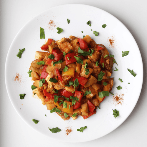 Chicken paprika with green apples is an original reinterpretation of a traditional Hungarian dish filled with fresh and unexpected notes. Hungarian cuisine is famous for its love of paprika, which gives dishes a rich flavor and deep color. In this recipe, the spiciness of paprika combines with tender chicken fillet and the sweetness of bell peppers, while green apples add a light tartness, making the taste balanced and rich. Thanks to the vegetables, the dish becomes juicy, and flour and butter create a velvety sauce that pairs perfectly with a side – such as soft dumplings or rice. This paprika not only warms on cold evenings but also surprises with its flavors, turning a familiar dish into a gastronomic journey through Hungary.