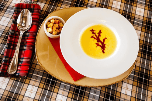 Corn cream soup is a delicate and velvety dish that captivates with its lightness and rich creamy-corn flavor. This recipe, inspired by European cuisine, combines simplicity of preparation with elegance in presentation. The base consists of canned corn, which gives the soup natural sweetness, while cream adds softness and harmony. To make the taste even more interesting, the soup is served with crispy croutons infused with sunflower oil aroma and an exquisite lingonberry sauce that adds a slight tanginess. This combination makes the dish perfect for both everyday dinners and festive tables. It is an excellent choice for those who appreciate refined flavors and want to enjoy a warming and enveloping cream soup.