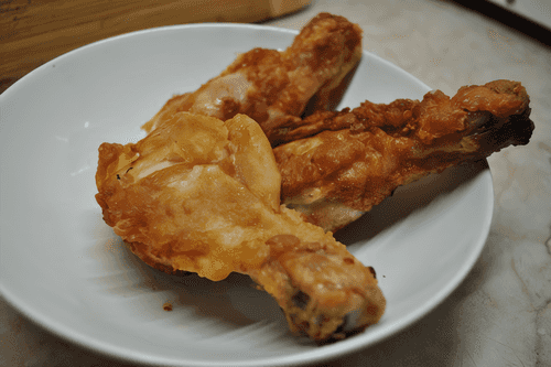 Chicken drumsticks in beer batter