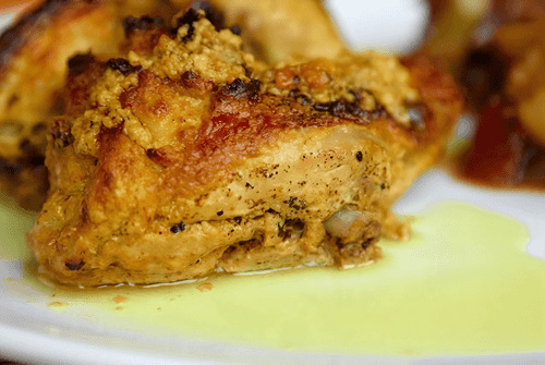 Salt the chicken pieces and place them in a pan with vegetable oil. Simmer covered for about 30 minutes until almost cooked.